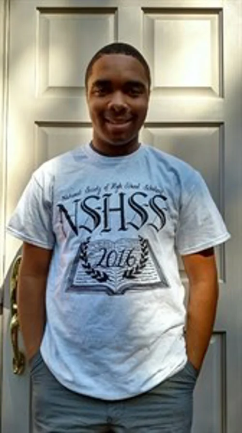 Nicole is very interested in art, and has won two best of show awards and several first place awards for her work. She is also currently working on a large mural for her school. She chose to hand draw her submission for the NSHSS Class of 2016 T-shirt Contest because she prefers the authentic and artistic look that drawing by hand offers. While she is a aware of the increasing popularity of technology being used in the creation of art, especially in graphic design, she thinks these digital tools make it difficult sometimes to see the artist's unique look. When asked to explain her contest submission Nicole said, "drawing by hand usually takes more time, effort, patience, and dedication, and I consider these as some of the most important scholarly qualities. I chose to draw an open book because it represents the eagerness to acquire knowledge. I thought this hand-drawn design would stand out among the others, because it is refreshing to see a combination of art and knowledge, and the use of both the right brain and left brain."